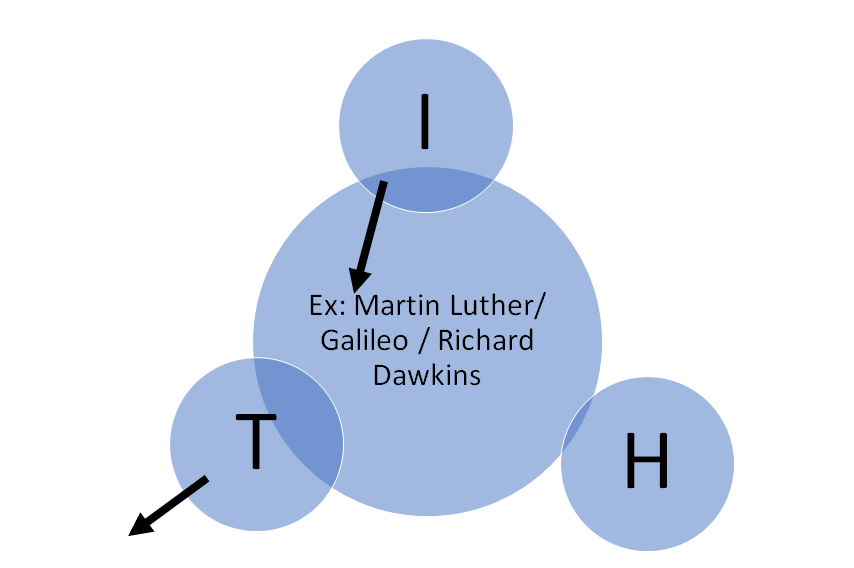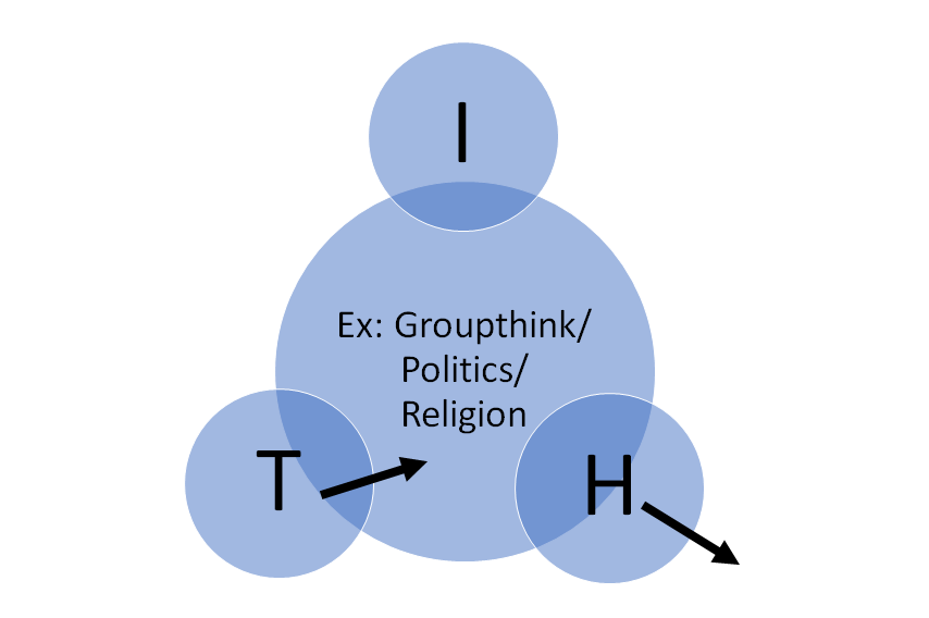 What I've struggled with the past few years is the concept of humanism(H) and how it conflates with tribalism(T) as well as individualism(I). The truth of the matter is that it doesn't. We all choose with our daily decisions what concept we stand by.